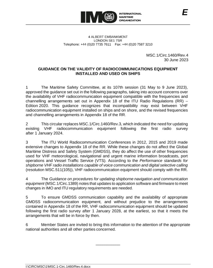 We have an important update regarding the harmonization of GMDSS requirements for radio installations on board SOLAS ships. The Sub-Committee has recently made significant modifications to COMSAR/Circ.32/Rev.1, which addresses these requirements. The revised version, COMSAR/Circ.32/Rev.2, will come into effect on 1 January 2024.