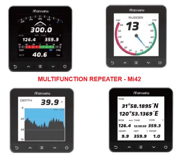 The Marinelite MI42 Multifunctional Display Instrument is a powerful and compact marine display designed to read and visualize NMEA0183 data. It provides mariners with real-time information such as GPS position, heading, speed, depth, water temperature, wind speed/direction, barometric pressure, rudder angle, drift, mileage, and more.